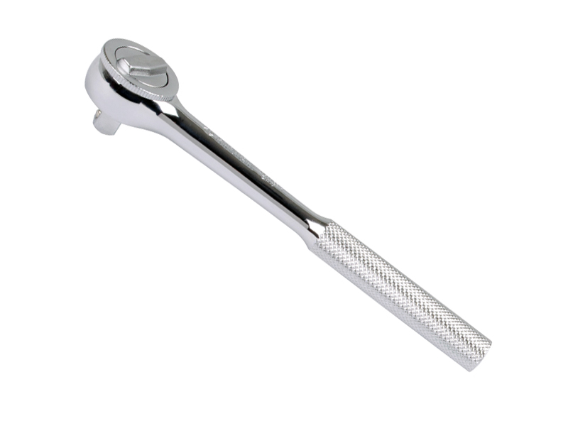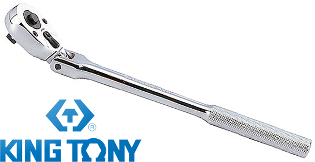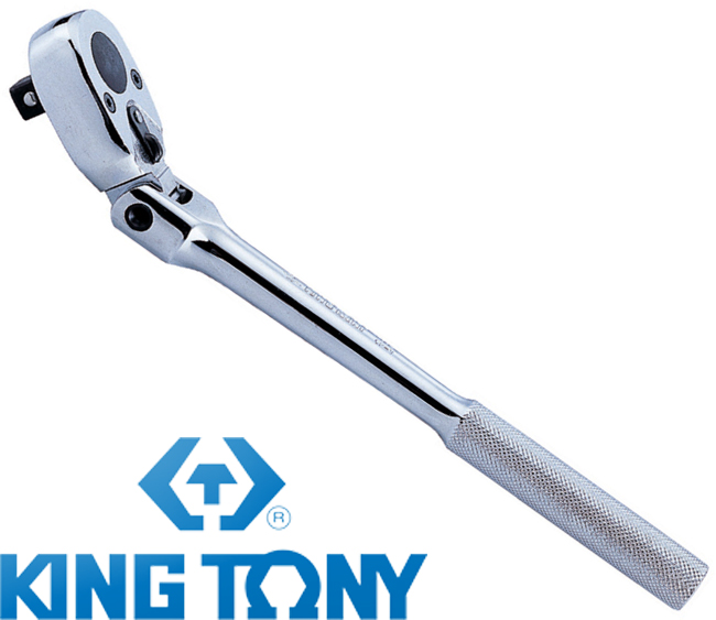 Grzechotka z ruchomą głowicą 3/8" 72T z przyciskiem 235mm, UCHWYT POLEROWANY