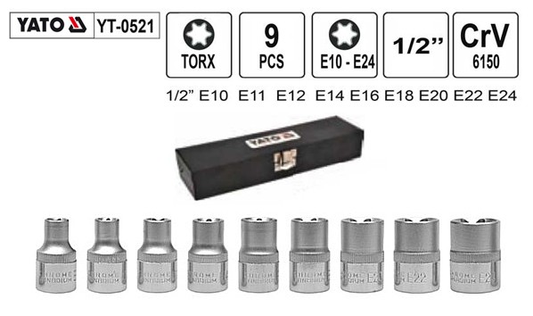 Klucze nasadowe TORX duże E10-E24 9cz.