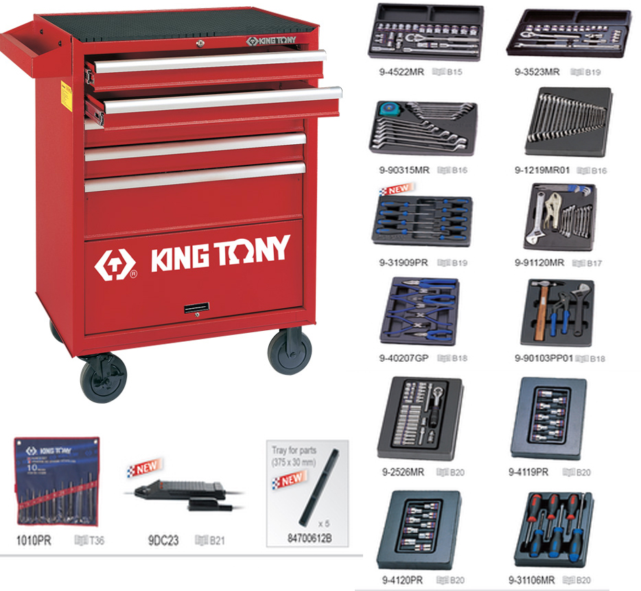WÓZEK WARSZTATOWY 87432-5B + 87411-6B + 87421-3B CZERWONY Z ZESTAWEM NARZĘDZI 172cz.