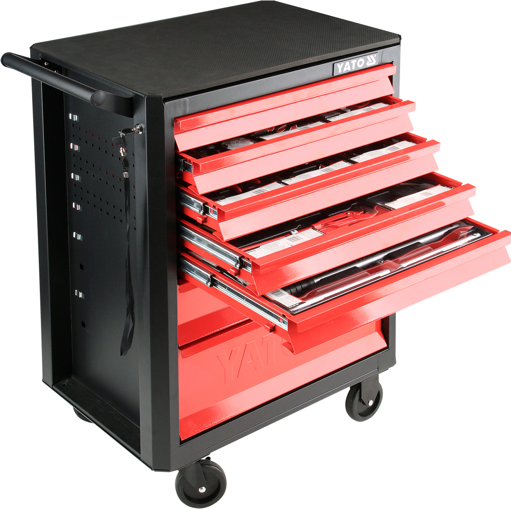WÓZEK WARSZTATOWY 87432-5B - CZERWONY, Z ZESTAWEM NARZĘDZI 173cz.