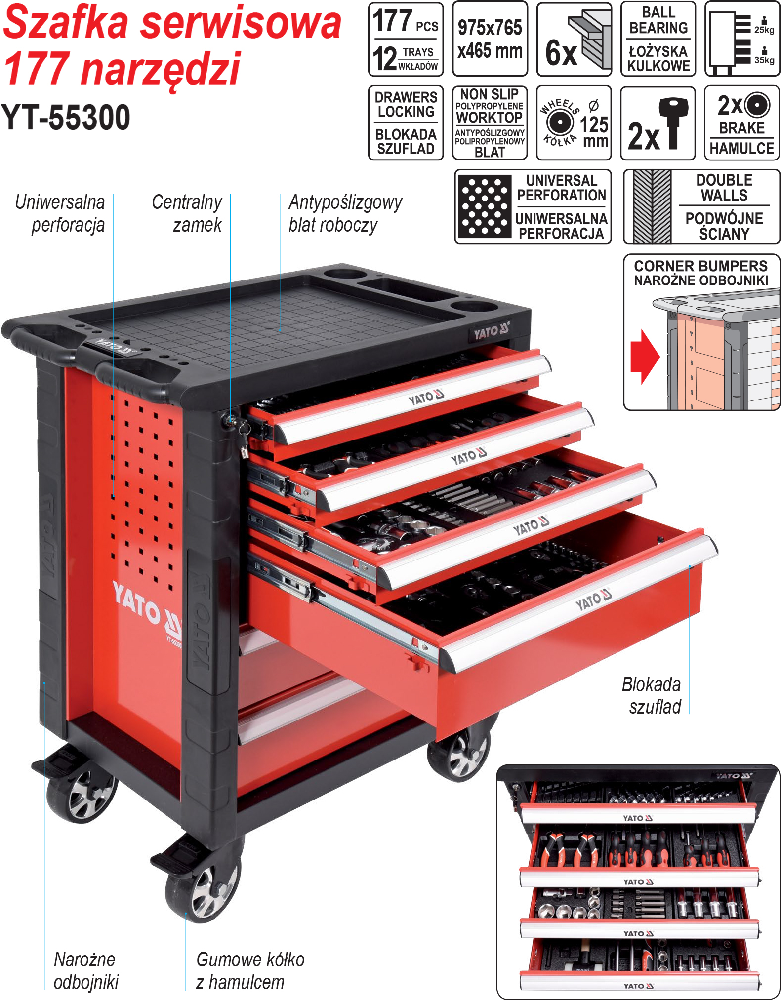 SZAFKA SERWISOWA ZE 177 NARZĘDZIAMI